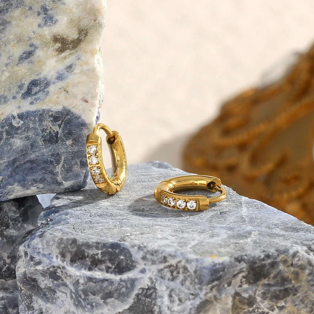 The crystal pavé adds just enough glam to feel special while staying clean and minimal—making these trendy gold huggie hoop earrings for women perfect for everyday wear, work, travel, or nights out. Basically, if you’re leaving the house, these belong on your ears.